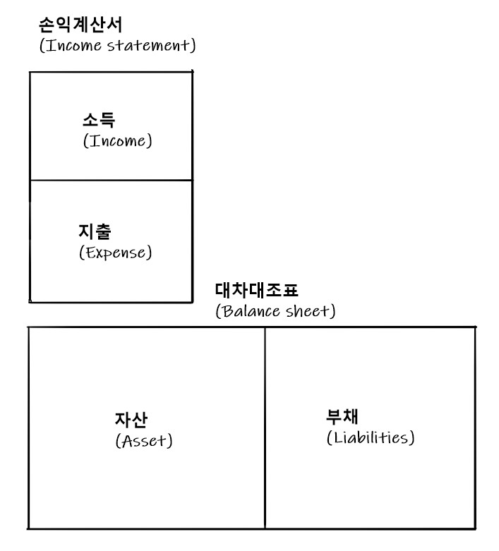 대차대조표 = 회사 혹은 개인의 경제규모가 어느정도 인지 수치화 해놓은 표