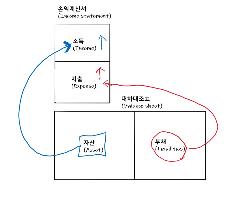 그래서 부자가 된다는 것은 자산을 크게 만들고 부채는 줄이면 되는 것이다(말은 매우쉽다 ㅎ)