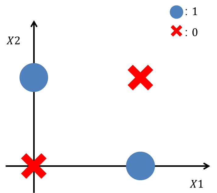 그래서 논리게이트의 조합방식을 숫자로 표현하면 다음과 같다(X1: 1번 입력신호, X2: 2번 입력신호).